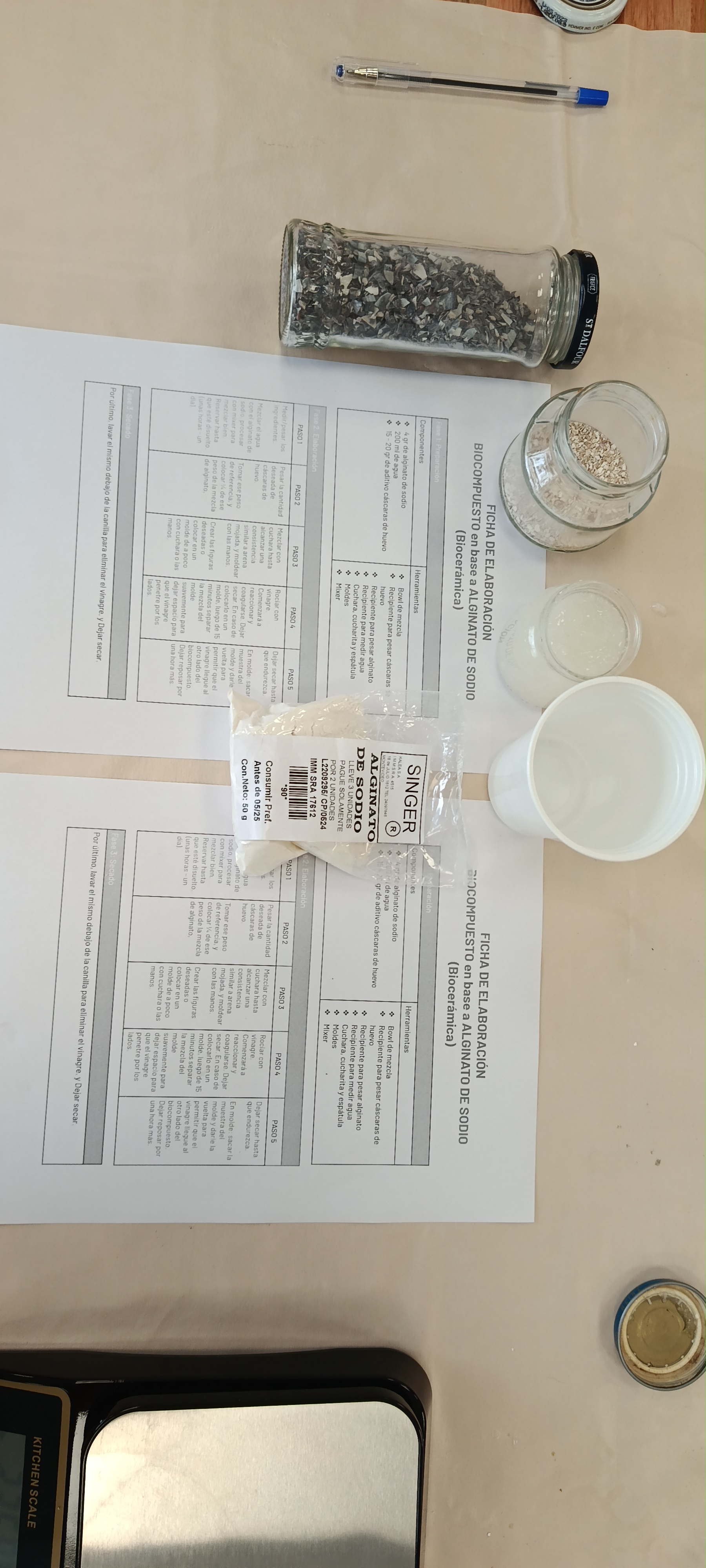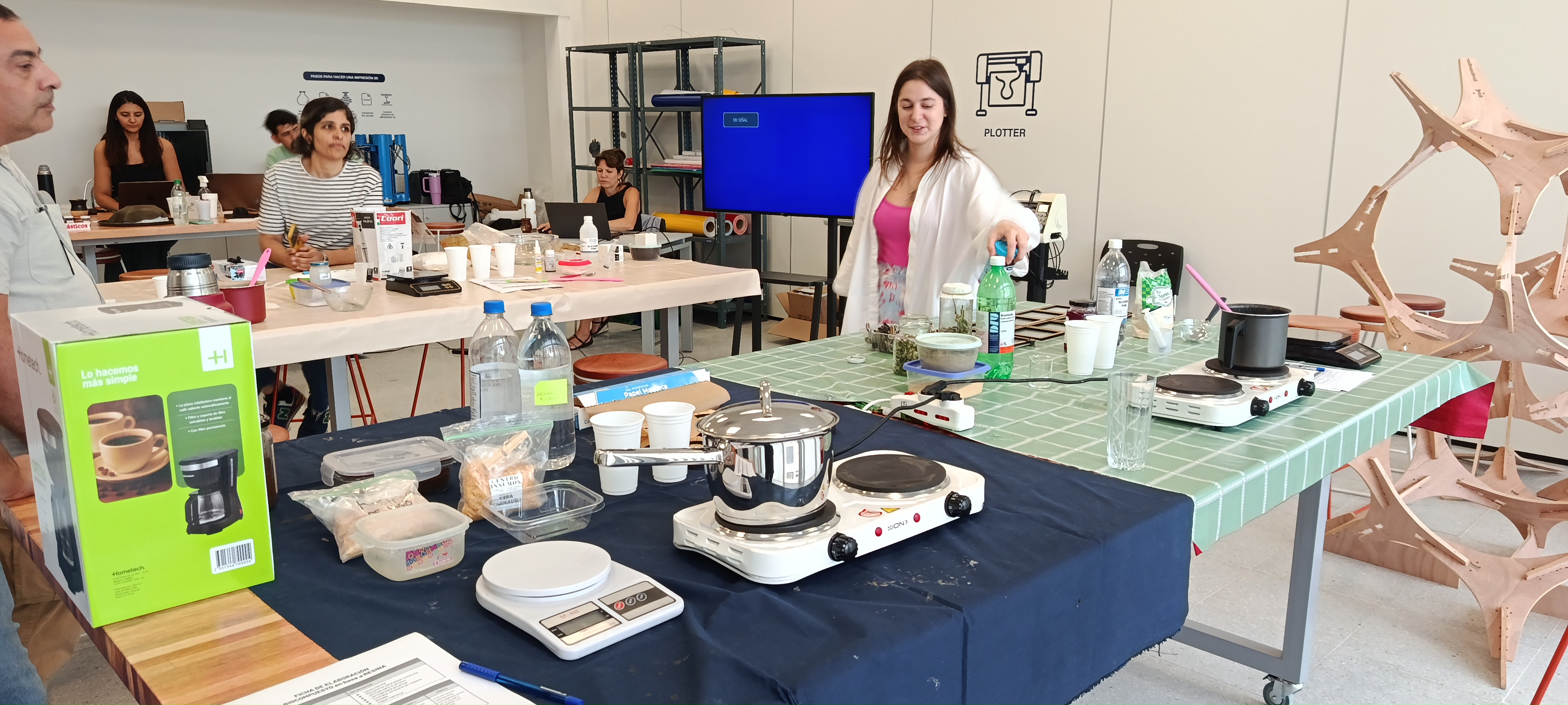 Un laboratorio diferente, complementario con un dejo culinario: la química, las recetas, las balanzas y las hornallas que nos prepararon los docentes fueron el escenario. Los biomateriales, bioplásticos o biopolímeros fueron desglosados y explicados por la Lic. Maria Clara Freyre, docente de la EFDI. Este eje temático viene emergiendo desde 2018 en el ámbito de FADU principalmente a través del EUCD. Un desafío es articular y reflexionar cómo atraviesa nuestra mirada disciplinar.