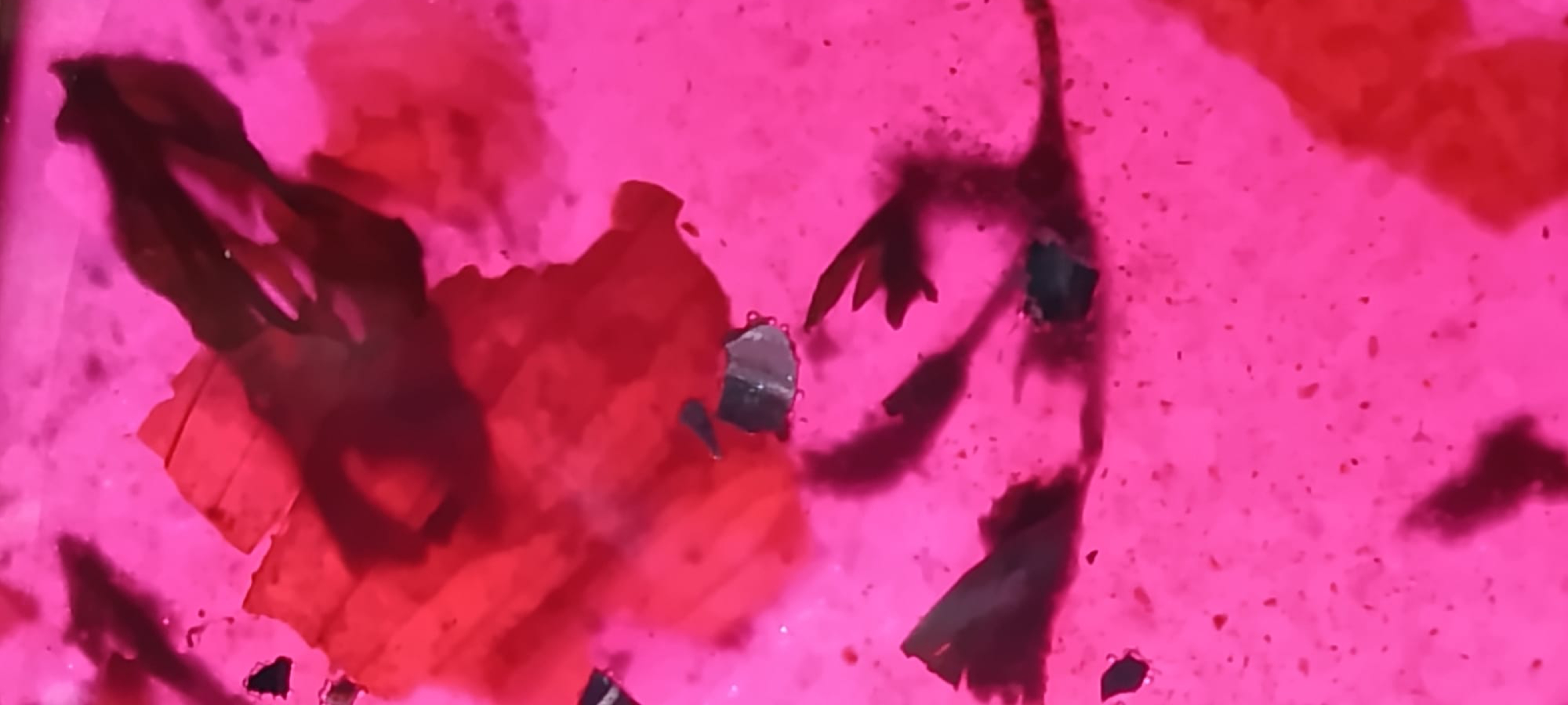En la tercera estación hicimos un bioplástico en base a gelatina. Se usó agua coloreada con flores de santarita fucsia, gelatina sin sabor y vinagre.