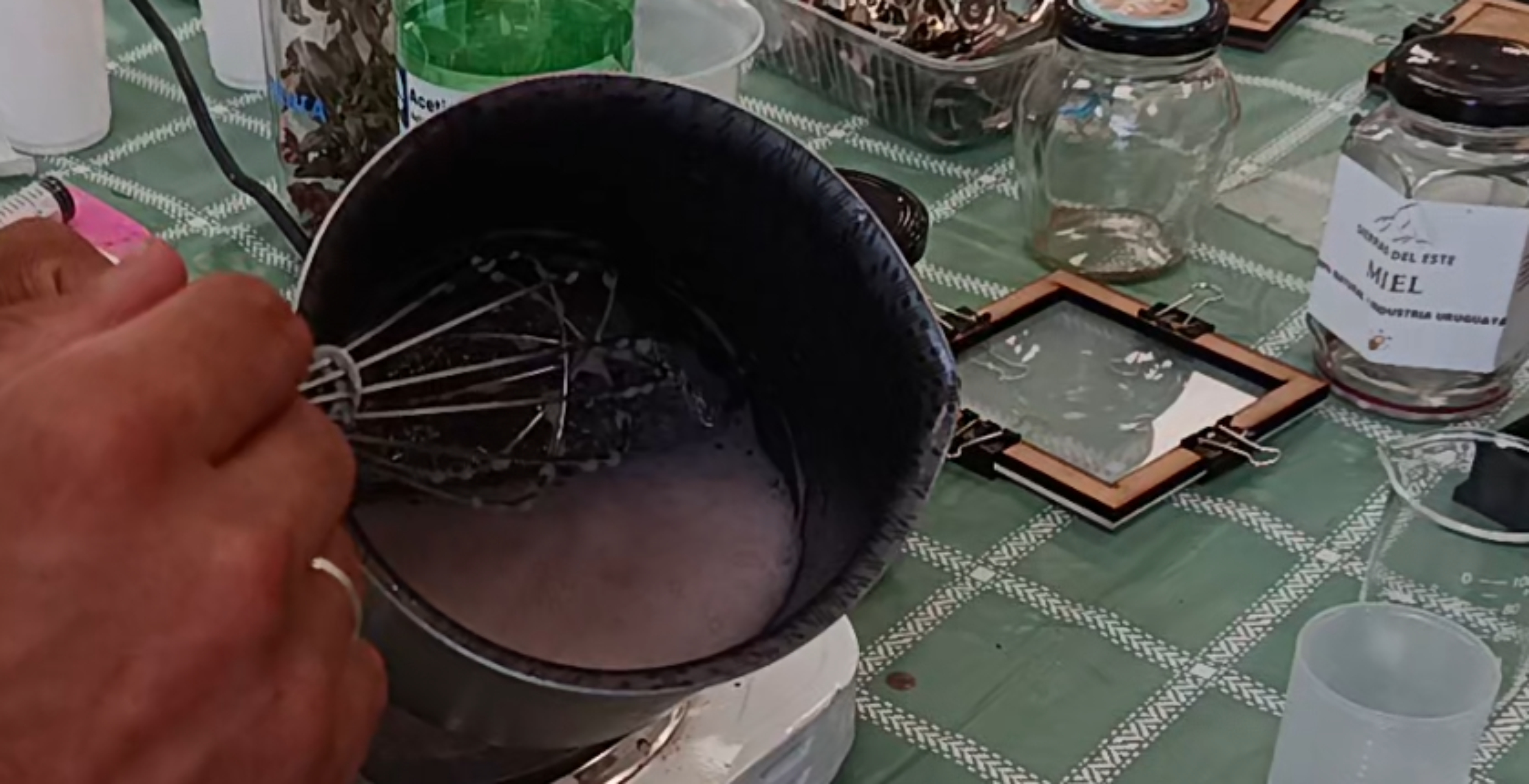Después del vertido hay que limpiar los utilitarios; para despegar los restos se usa alcohol caliente; eso disuelve la mezcla y permite retirar bien todo el material. Una característica importante de este bioplástico es que se puede desmoldar muy rápido. En una hora el material ya estaba frío y se pudo retirar la pieza del molde.