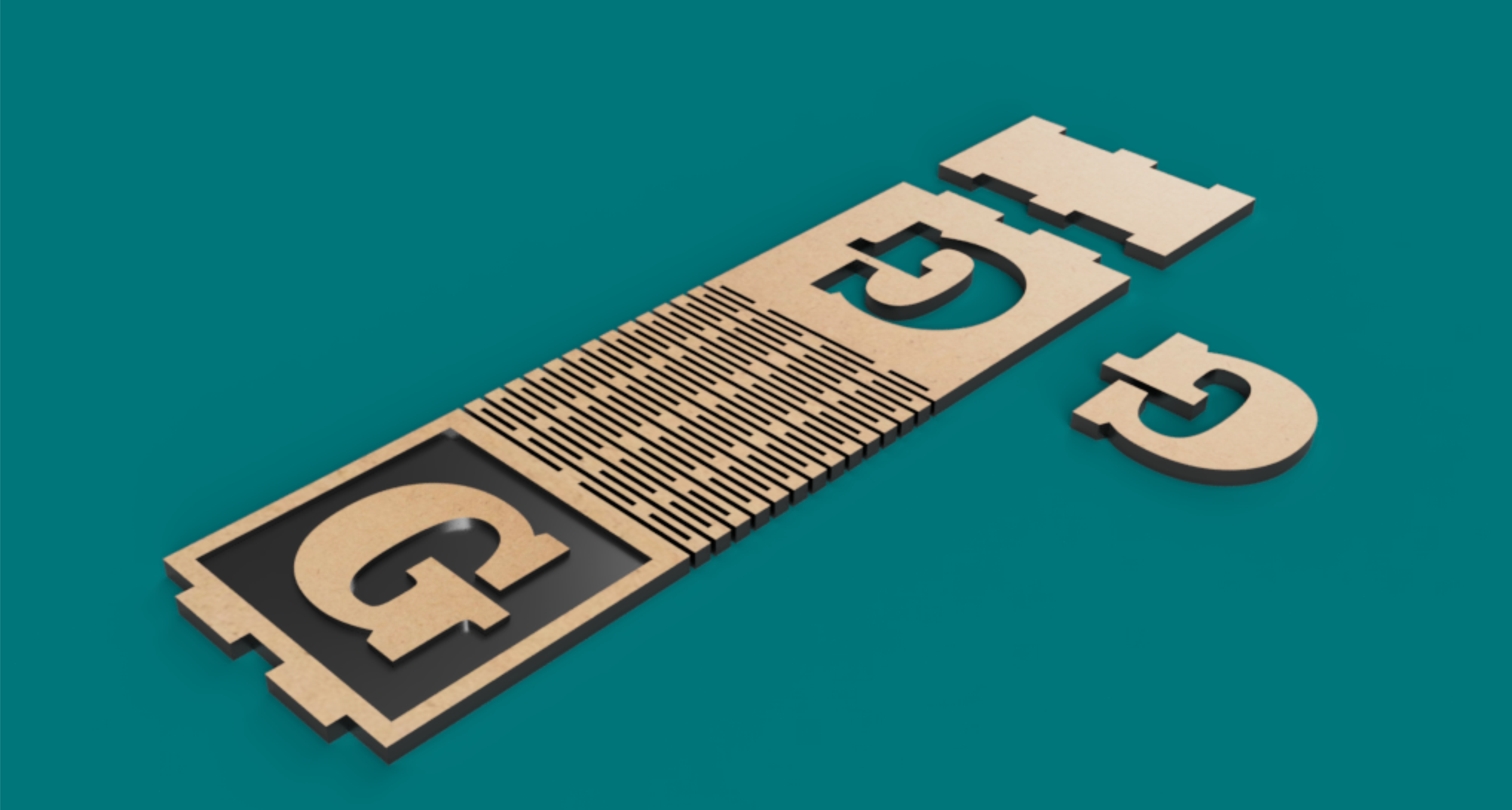 En el ejercicio, primero planteé una franja con una zona flexible, cuya forma se generaba doblando la pieza y pegando una base. El diseño jugaba con la tipografía como valor estético, usando la letra G de Clarendon, por su hermosa combinación de curvas y rectas. Aunque no logré parametrizar nada en el primer intento, sí pude experimentar con renders y texturas que representaban bastante bien el resultado final de la pieza.
