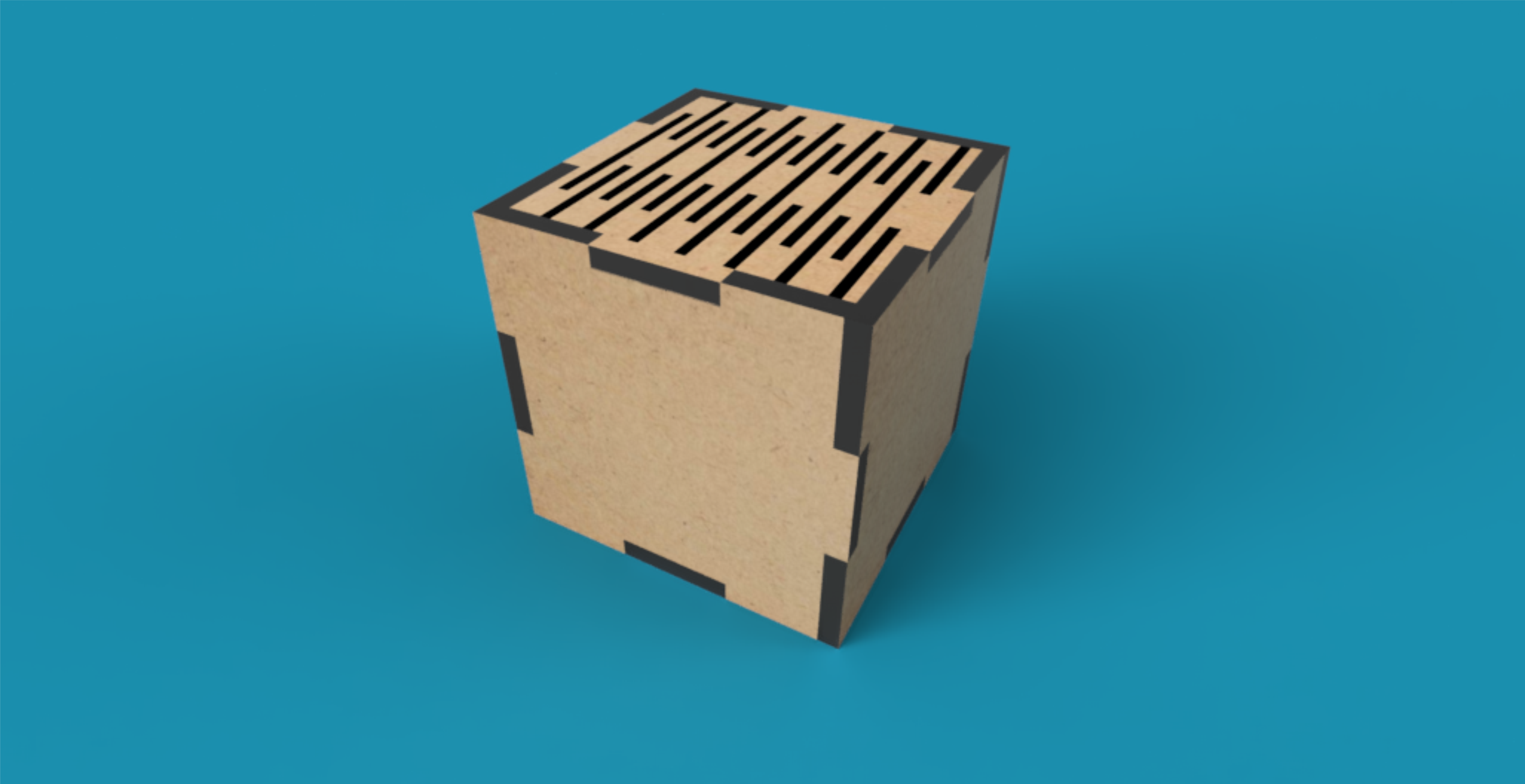 El desafío fue entender la metodología de extracción de los datos bidimensionales del modelo 3D parametrizado. Hicimos un modelo que será fabricado en MDF de 3 mm de espesor: un cubo de seis caras con encastres de acople en sus cuatro lados.