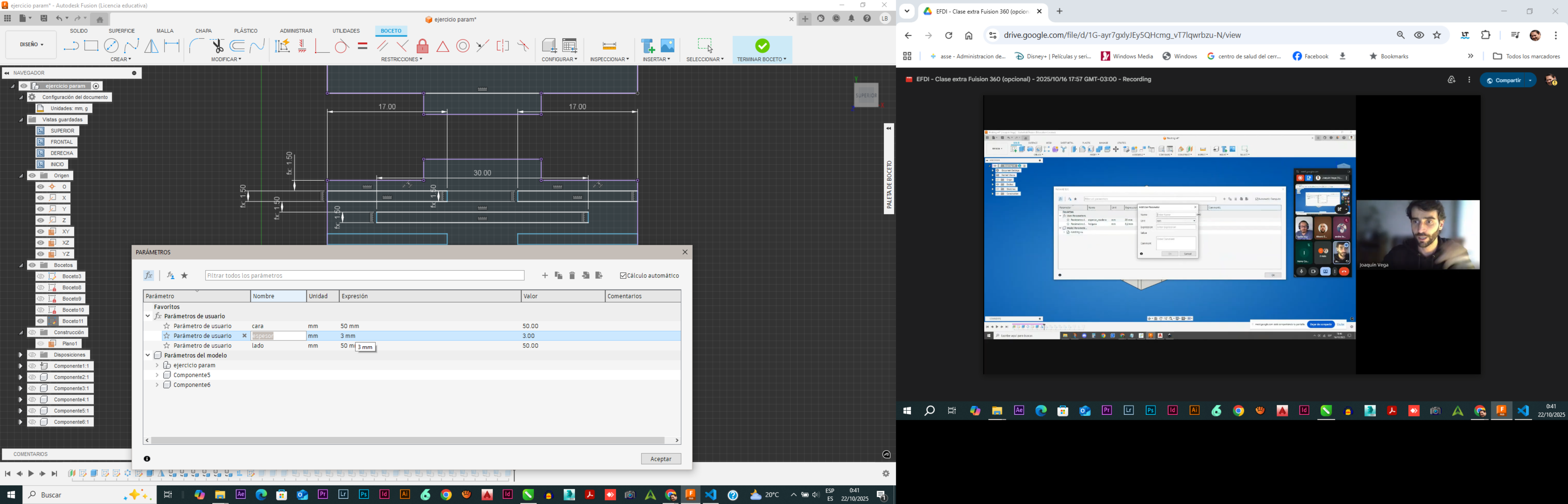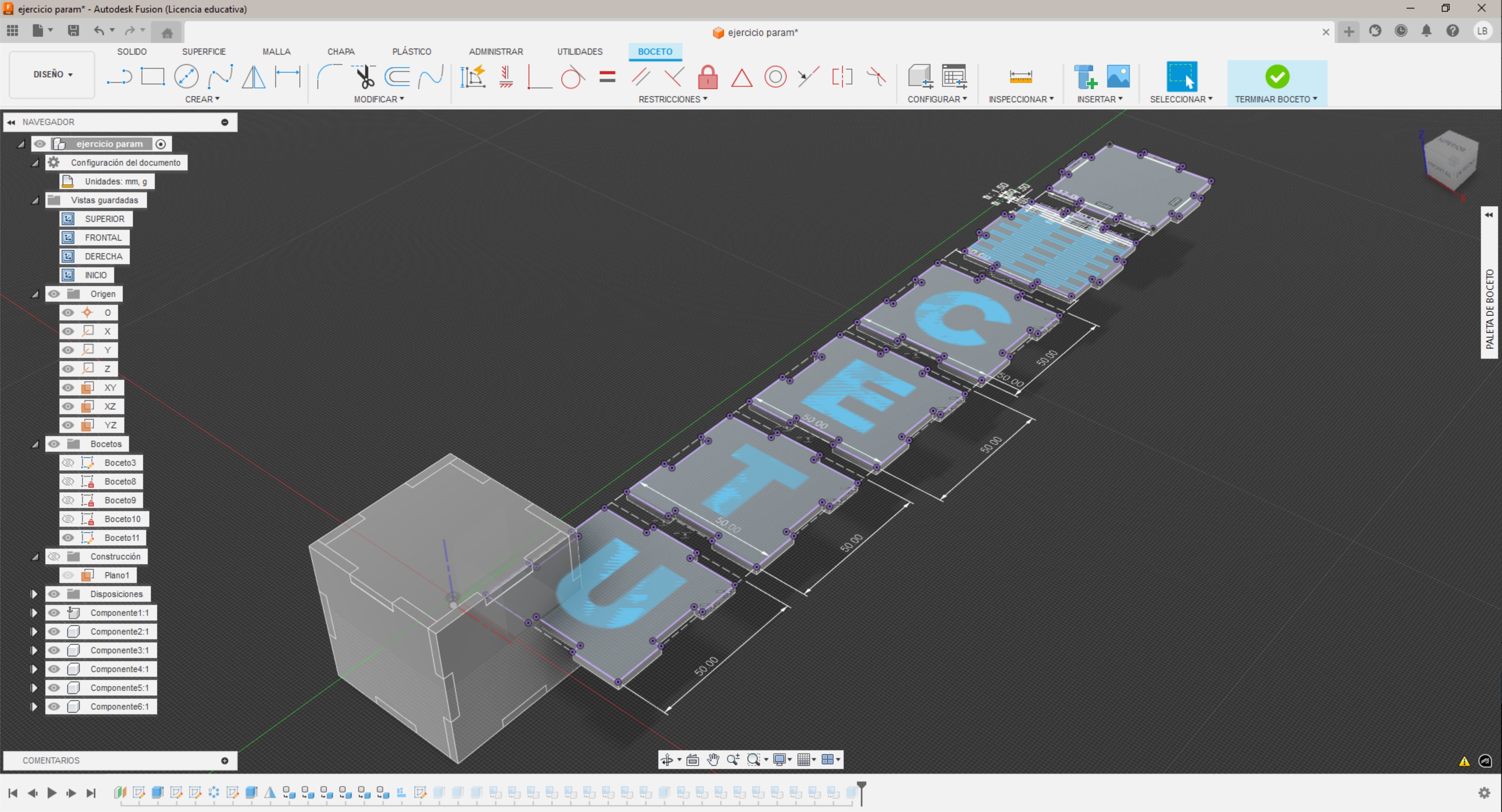 En la clase extra de Fusion con Joaquín recién pude entender el funcionamiento conceptual de la parametrización. Inicié un nuevo diseño, esta vez logré parametrizar correctamente y generar el archivo listo para el corte. Fue un avance importante, porque todo empezó a tener mas sentido en la práctica.